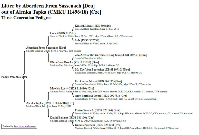 | Mutter: Blithefire's Brooke | VDH/ZBrH BOC 17676 | Mutter: Daithi Ballarat | CMKU/BOC/8755/-15/17 |